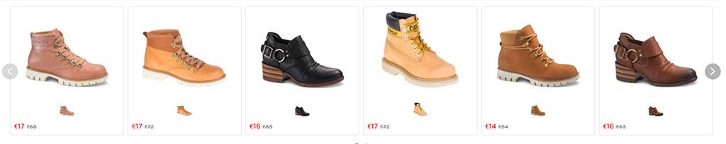 We see that all items on the website are discounted and the prices are very low. For example some boots whose market price is 131 euros in this shop are sold for only 24 euros. Without a doubt we are dealing with a fake online store and a possible fraud. Be very careful with buying in this store.