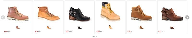 Analyzing the store we see that it has SSL. We have seen the design of this store in other fake online stores. You can only pay by credit card. There is no information about the company behind the website. There are parts of the website that are untranslated. It has social network icons that do not point to any real profile. On the subject of prices we see great discounts on all items. For example, boots worth 67 € here are selling for only 16 €. Without a doubt we are dealing with a fake online store and a possible fraud. Be very careful if you buy here.
