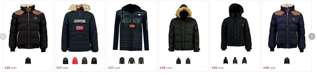 On the subject of prices we see great discounts on items. A jacket worth 255 euros here sells for only 27 euros. Without a doubt we are looking at a questionable online store and a possible fraud. Be very careful with this kind of shops.