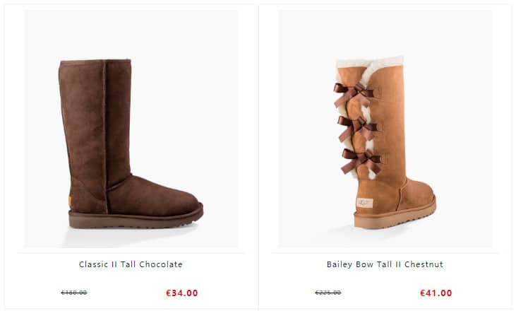 On the subject of prices we see big discounts on items. We see some boots that are worth almost the 200 euros that are sold here for only 37 euros. Without a doubt we are looking at a fake online store and a possible fraud. Be very careful with these shops.