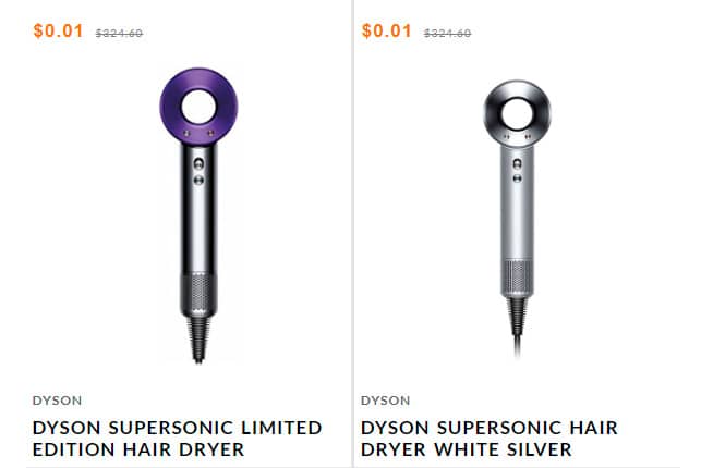 Analyzing the web we see that it has SSL. There is no information about the company behind the website (it’s not Dyson). You can pay with Paypal. It has an icon to an Instagram account. The real Dyson for dryers and so on. Obviously this account has nothing to do with the fake shop. In terms of prices, we can see a dryer that is worth almost 400 $ in the market and this website sells for just under 100. No doubt we are dealing with a scam and a fake online store.