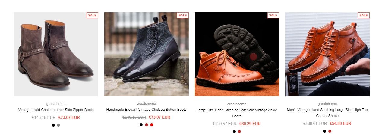 As far as prices are concerned we see big discounts on all items. For example some boots that cost in the market almost 75 euros here are sold for just over 37 euros. Taking into account the above we can say that we are looking at a fake shop and a possible fraud. Be very careful to buy in this type of stores.
