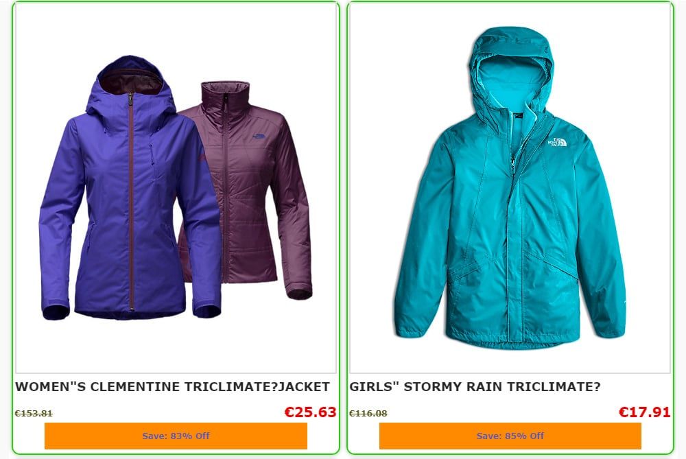 As far as prices are concerned we see big discounts on the items. Jackets worth more than 200 euros in this shop are sold for just over 100 euros. Without a doubt we are looking at a fake online store and a possible fraud. Be very careful not to fall into this type of shop.