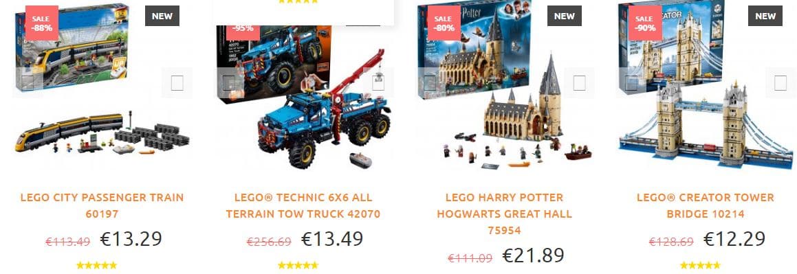 Analyzing the store does not have SSL. There is no information about the company behind the web (and it is not Lego). It has social network icons that point to Lego’s profiles, not those of the store. As for prices we see great discounts, we see packs that have a market price of almost 150 € and that in this store are sold for just over 22 €. No doubt another fake store and a scam.