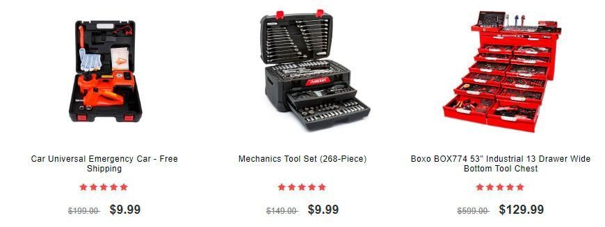 Analyzing the store we see that it has SSL. You can only pay by credit card. There is no information about the company behind the website. They also have icons of social networks that do not point to any profile. We have seen the design of the website in other fake online stores. As for prices we see great discounts. A toolbox that would normally cost more than 500 € is sold here for a little more than 70 €. There is no doubt that we are dealing with a fake shop and a scam.